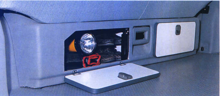 Artikelnummer: 50001Mit Fangnetz auf Rückseite. Durch den Einbau dieses Moduls wird der Stauraum unter der Sitz-Liegebank bestens nutzbar sein. Durch die beiden Seitenwände sowie der Mittelwand sind die darin gelagerten Teile bestens gegen Umherfliegen geschützt. Das nach hinten absichernde Fangnetz schützt dazu noch vor Herausfallen der Teile. Zudem fährt dann alles was unter der Sitzbank eingelagert ist, beim Umbau der Sitzfläche zum Bett, immer mit vor und dann wieder zurück. Nichts mehr kann die Mechanik der Bank blockieren. Endlich Ordnung.
