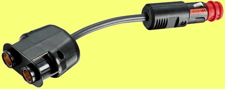Flexibler Anschluss an das Bordnetz an 12V-Steckdose mittels Sicherheits-Universalstecker mit auswechselbarer 16 A-Sicherung