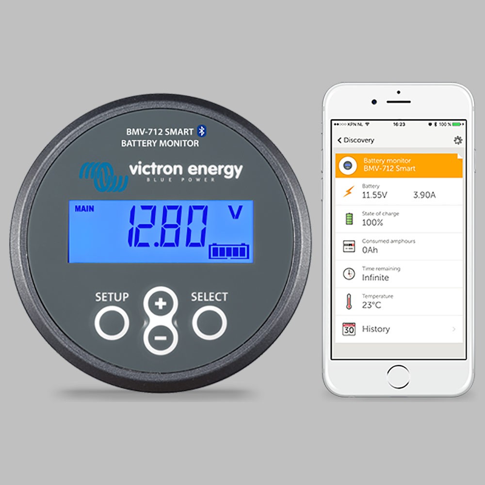 Mit seinem eingebauten Bluetooth ist das BMV Smart bereit für das Zeitalter des Internets der Dinge (IdD). Die meisten anderen Victron Energy Produkte verfügen ebenso über Bluetooth. Die drahtlose Kommunikation zwischen den Produkten vereinfacht so die Installation von Systemen und verbessert die Leistung. Die App Victron Connect kann kostenfrei von der Victron Homepage, den App Store oder Google Play heruntergeladen werden.