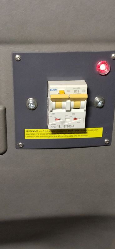 - FI-Personenschutz-Automat, 2-pol., 13A. Fehlerstromschutzschalter mit einem Auslösestrom von 30 mA und einem Sicherungsautomat mit 13A, Einbau-Version mit Montageplatte und Signalleuchte.