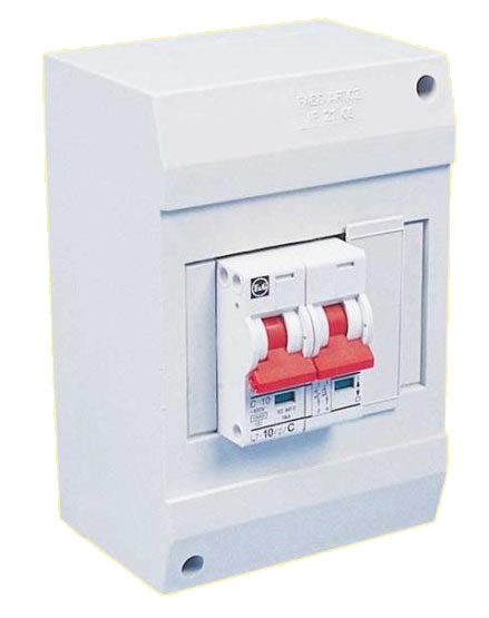 - Sicherungs-Automat, 2-pol., 13 A. Ohne FI-Schalter. Bei Kurzschluss wird die Stromzufuhr abgeschaltet. Aufputzausführung Gehäuse Grau.