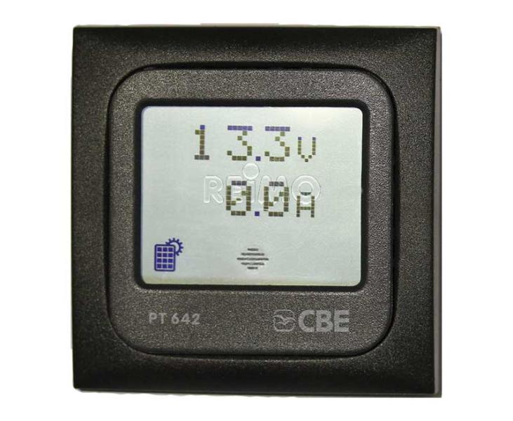 Solaranzeige zur exakten Auskunft der Batteriespannung (V) und des Solarladestroms (A), der von der Solarzelle zur Batterie fließt.